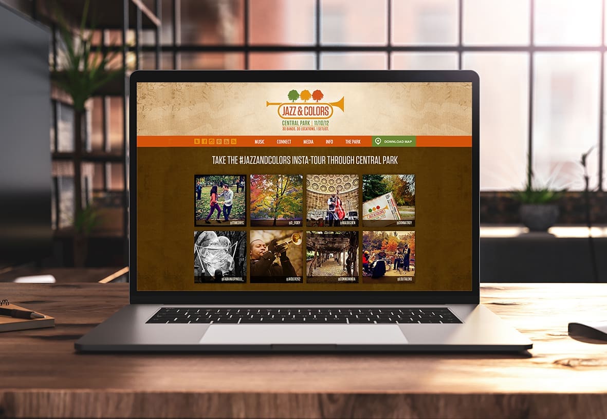 Logo and branding design for signage, map and social media for the premier of New York City’s Jazz & Colors Jazz Festival. Central Park.